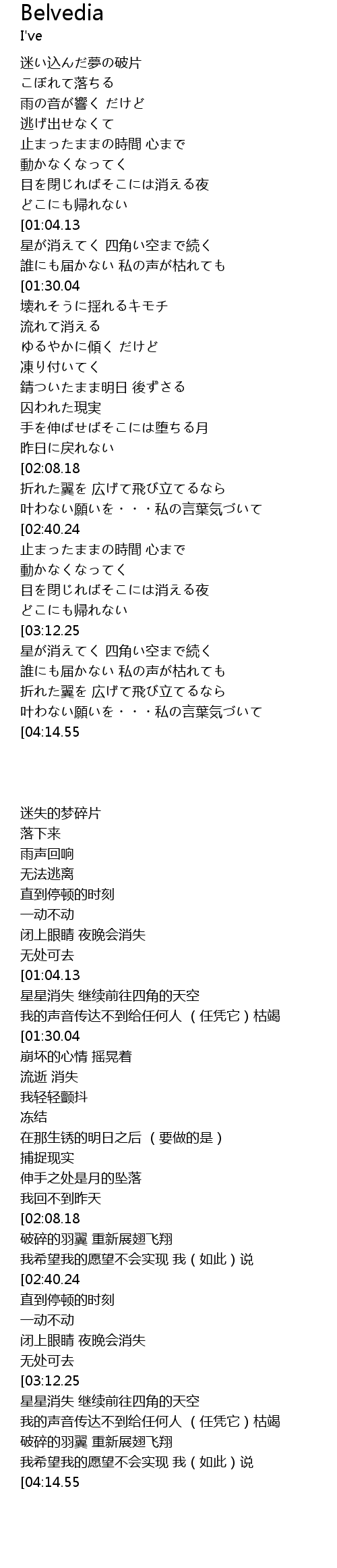 | [03:35.65] | 叶わない願いを・・・私の言葉気づいて |