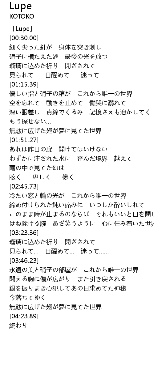 | [03:46.57] | 永遠の美と硝子の部屋が これから唯一の世界 |