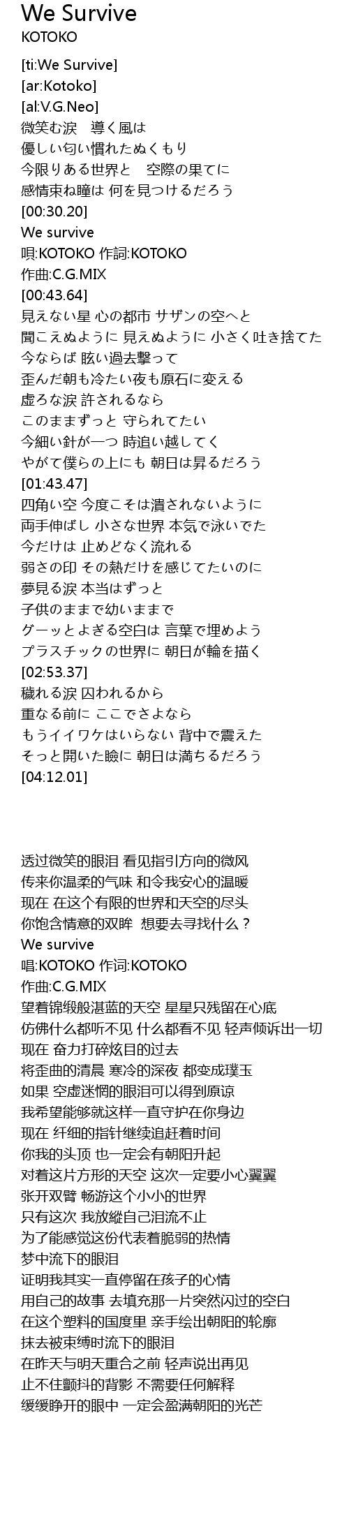 | [00:33.22] | We survive |