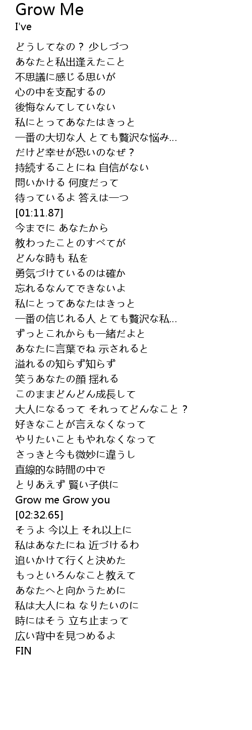 | [02:53.57] | 私はあなたにね 近づけるわ |