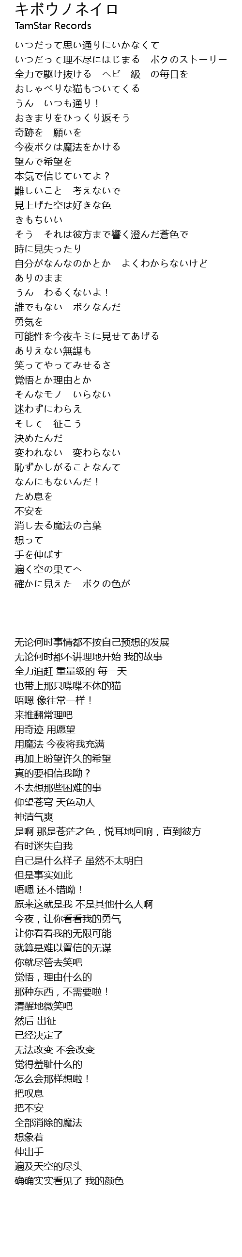 | [00:49.400] | 今夜ボクは魔法をかける |