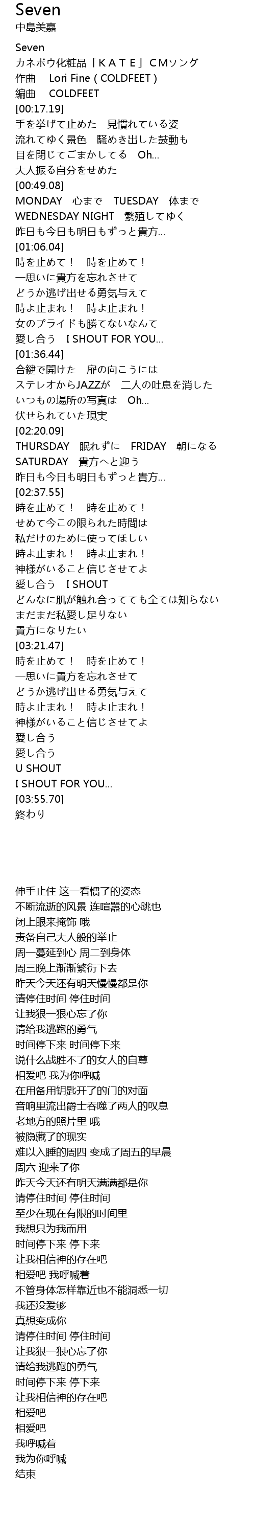 | [00:51.52] | MONDAY 心まで TUESDAY 体まで |