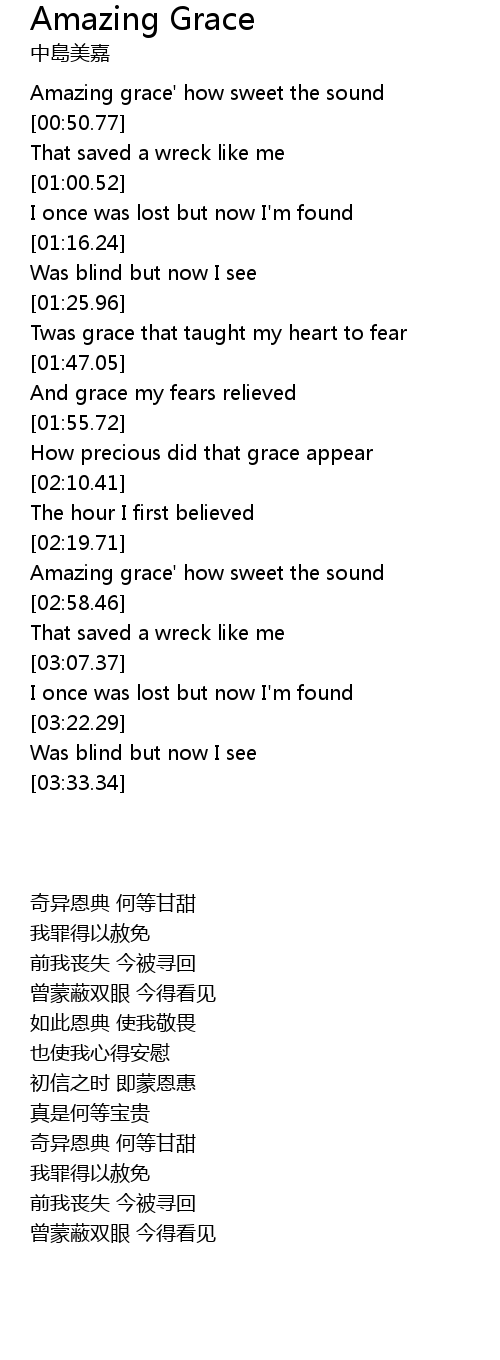 | [00:40.13] | Amazing grace' how sweet the sound |