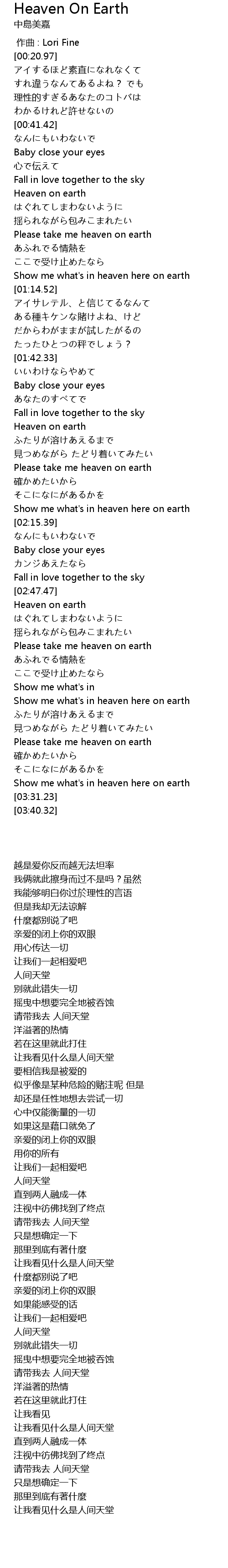 | [02:12.13] | Show me what' s in heaven here on earth |