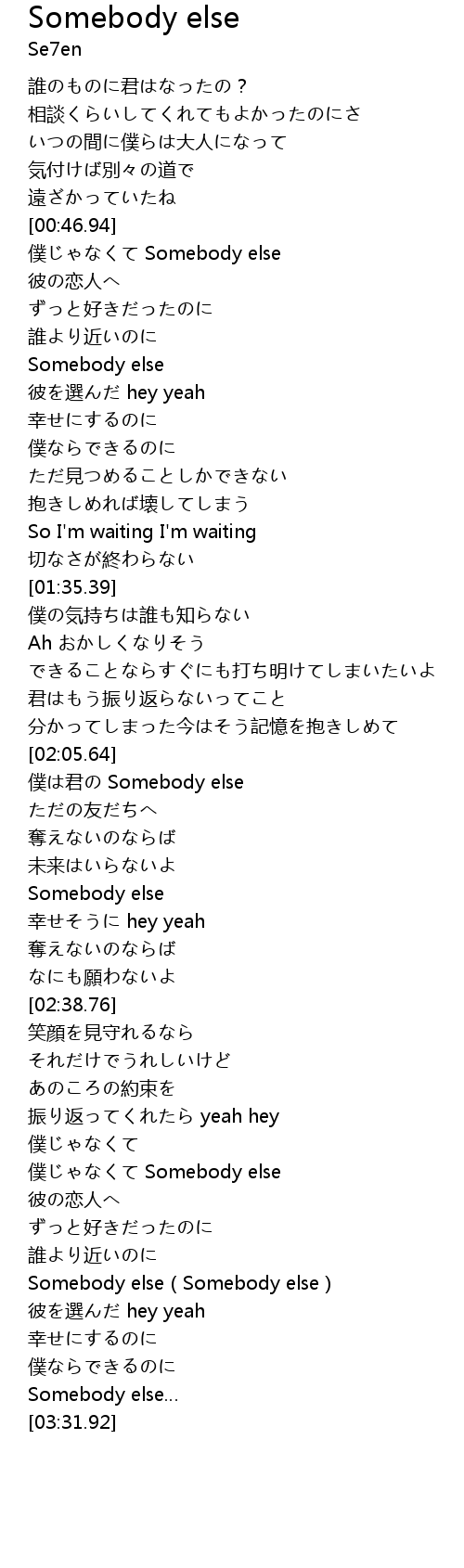 | [03:14.83] | Somebody else Somebody else |