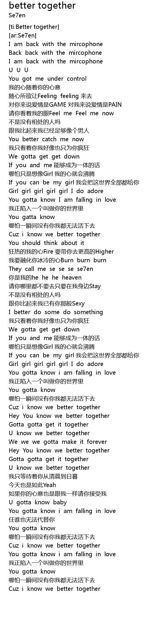 | [02:28.51] | Hey You know we better together |