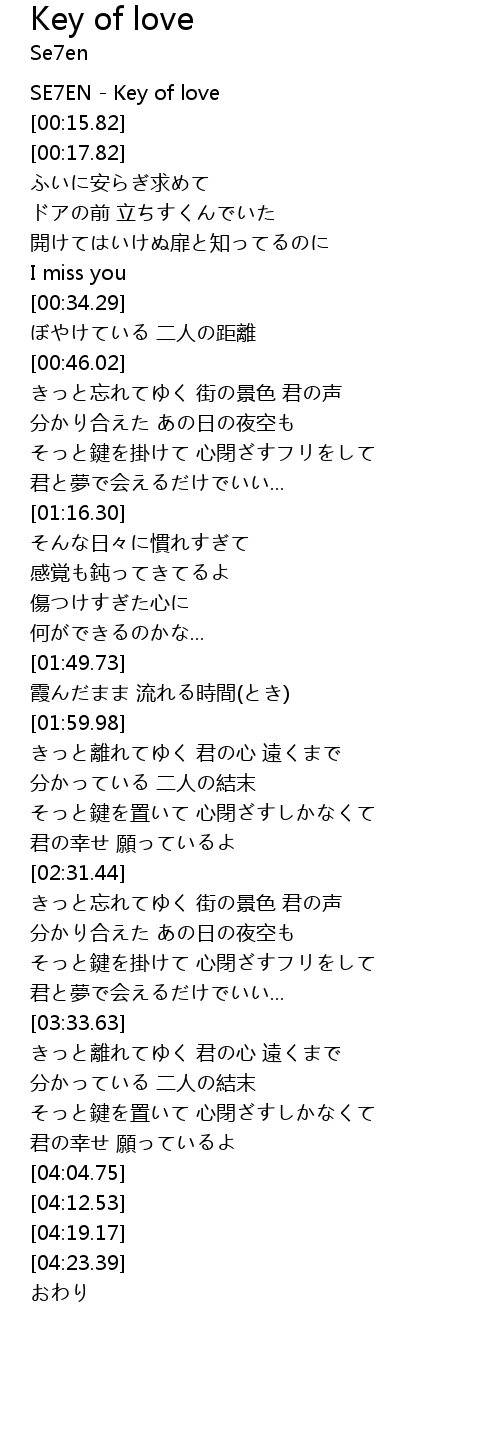 | [00:00.00] | SE7EN - Key of love |
