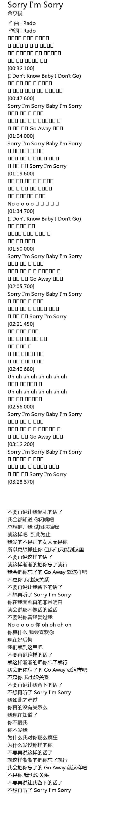 | [02:18.890] | 더 듣기 싫어 Sorry I'm Sorry |