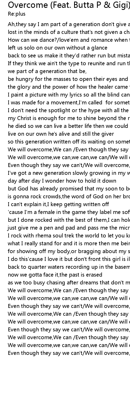 We will overcome,we can,we can,we can/We will overcome,we can |