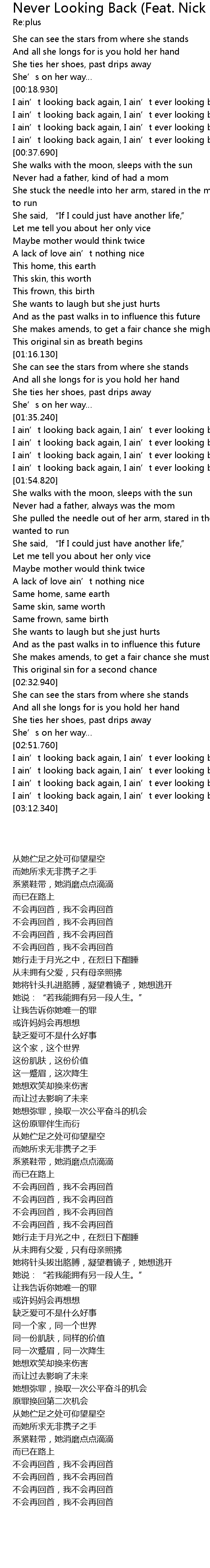 | [02:53.920] | I ain' t looking back again, I ain' t ever looking back again |