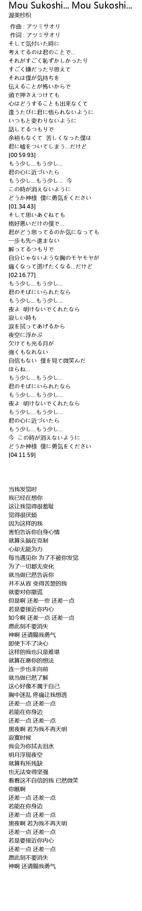 | [03:38.31] | shǎo shǎo |