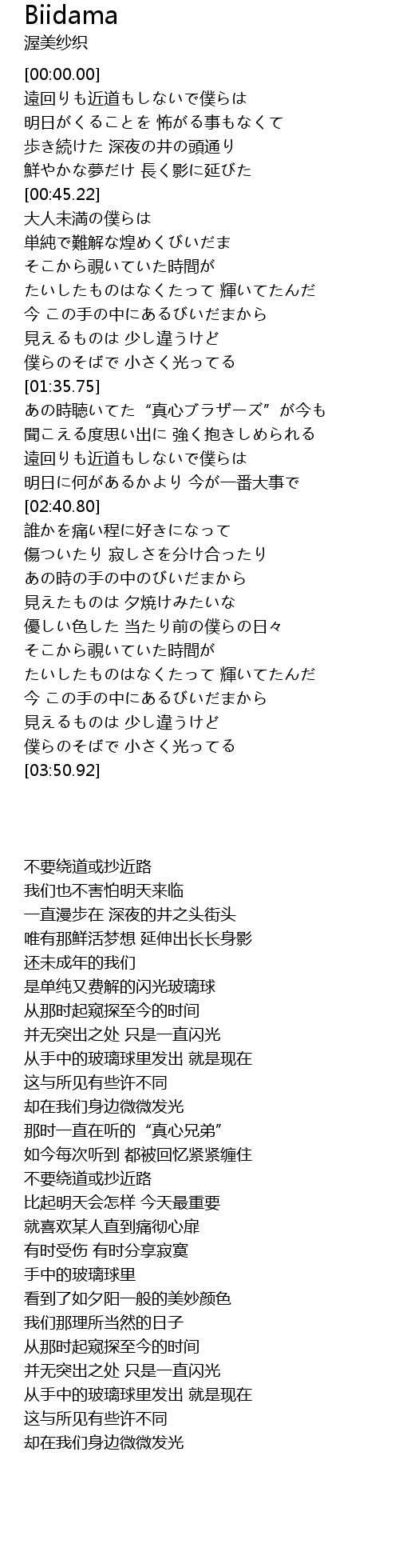 | [00:56.62] | 単純で難解な煌めくびいだま |