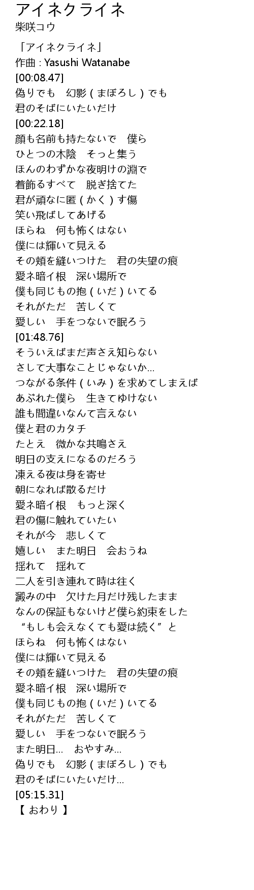 | [02:18.14] | つながる条件(いみ)を求めてしまえば |