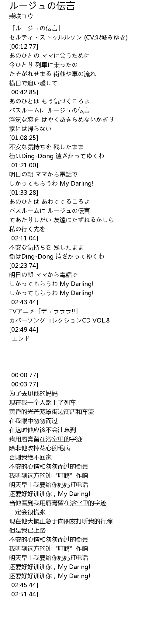 | [02:45.44] | TVアニメ「デュラララ!!」 カバーソングコレクションCD VOL.8 |