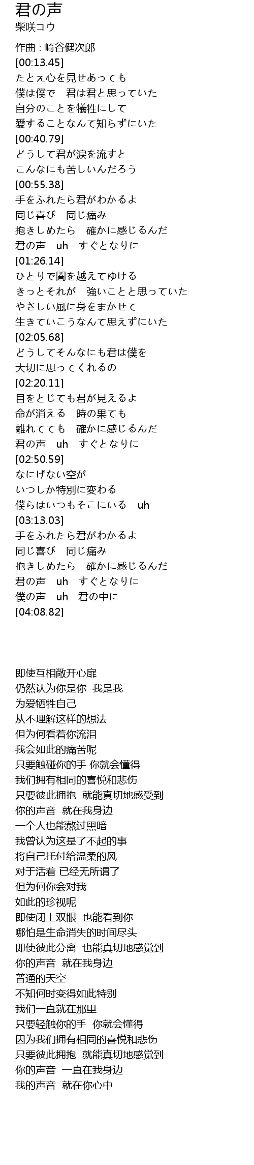 | [03:48.33] | 君の声 uh すぐとなりに |