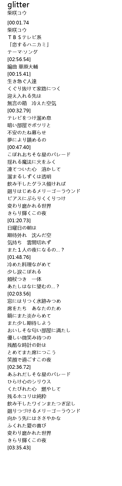 | [02:38.72][00:01.74] | Glitter |