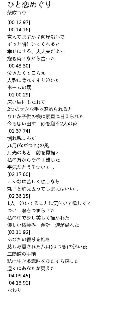 | [01:27.64] | 今も思い出す 砂を蹴る2人の靴 |