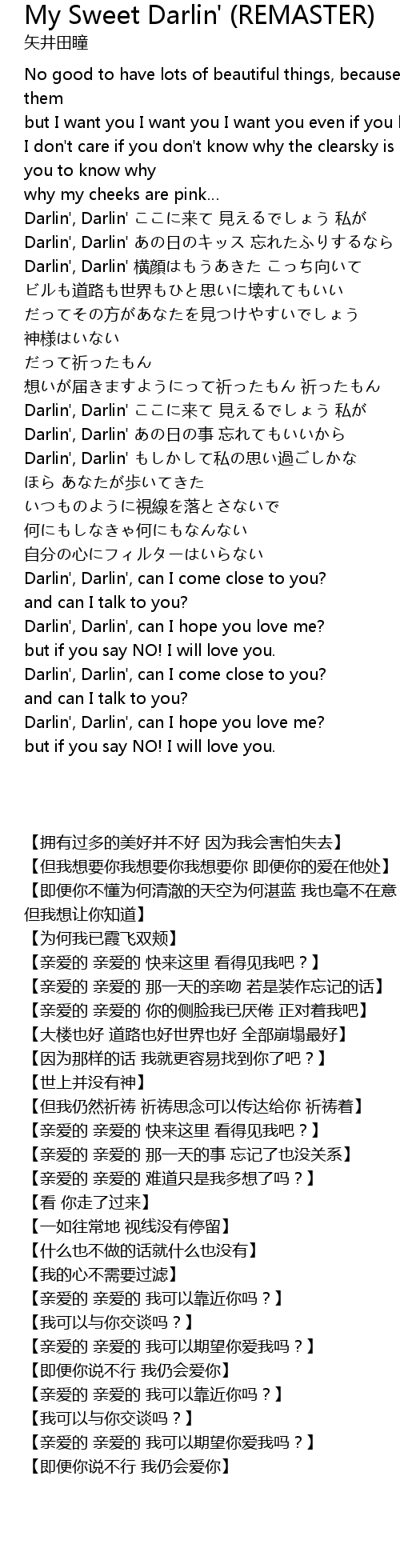 | [02:33.43] | Darlin', Darlin', can I come close to you? |