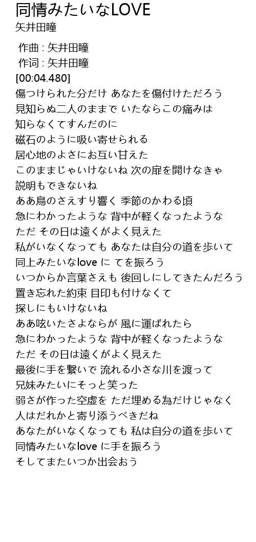 | [00:00.00] | 作曲 : 矢井田瞳 |
