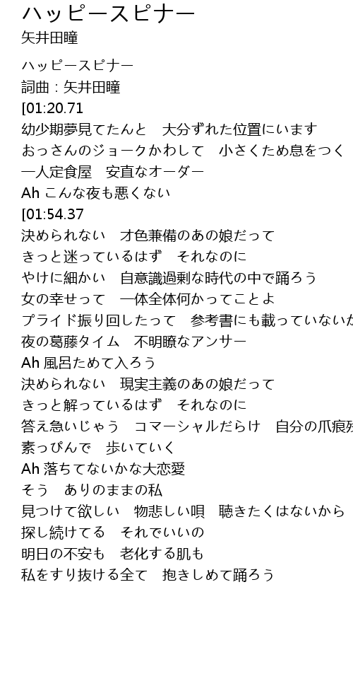 | [00:05.00] | 詞曲:矢井田瞳 |
