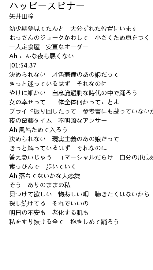 | [00:47.62][01:54.37] | ねぇ 未来のハッピー度合いは今 |