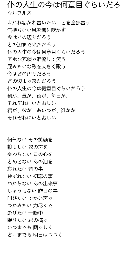 | Song | 仆の人生の今は何章目ぐらいだろう |