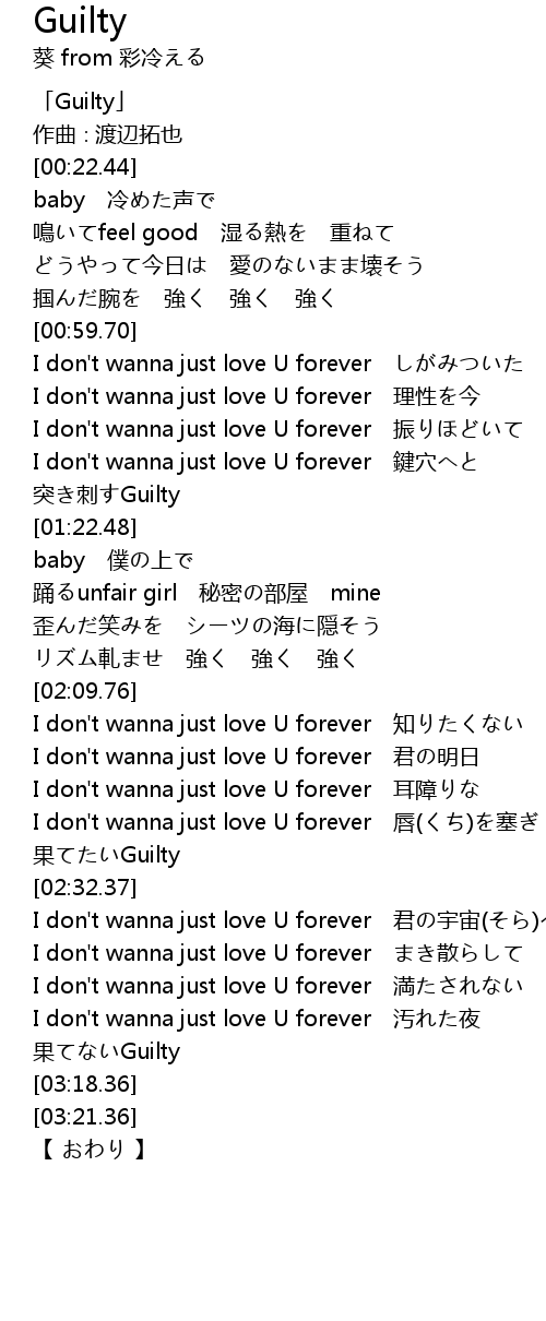 | [02:24.37] | I don't wanna just love U forever 唇(くち)を塞ぎ |
