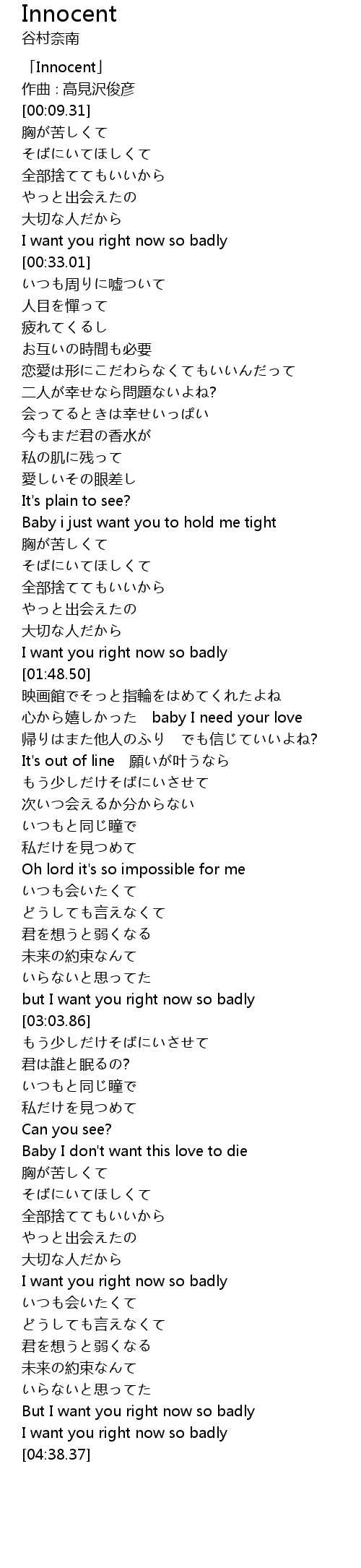 | [02:02.42] | 心から嬉しかった baby I need your love |