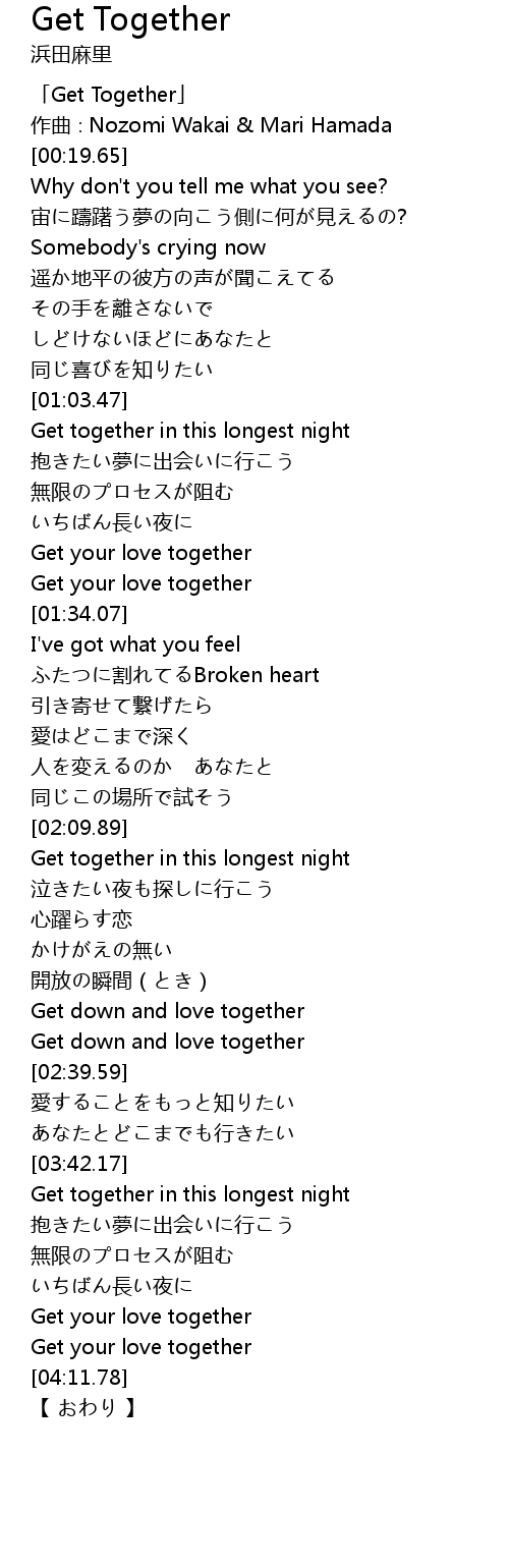 | [00:11.65] | zuò qǔ Nozomi Wakai Mari Hamada |