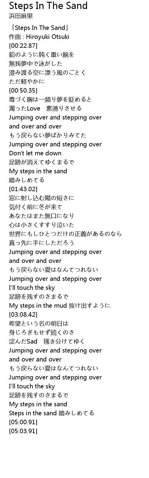 | [04:55.12] | Steps in the sand 踏みしめてる |