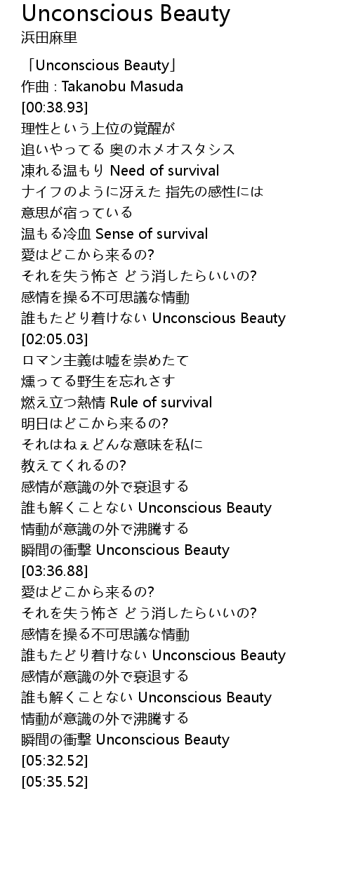 | [03:00.63] | 誰も解くことない Unconscious Beauty |