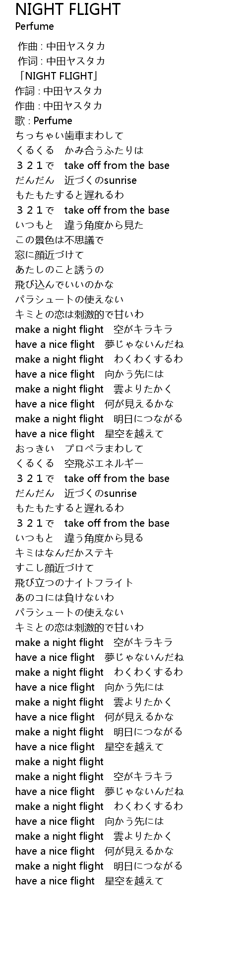 | [03:25.100] | make a night flight 明日につながる |