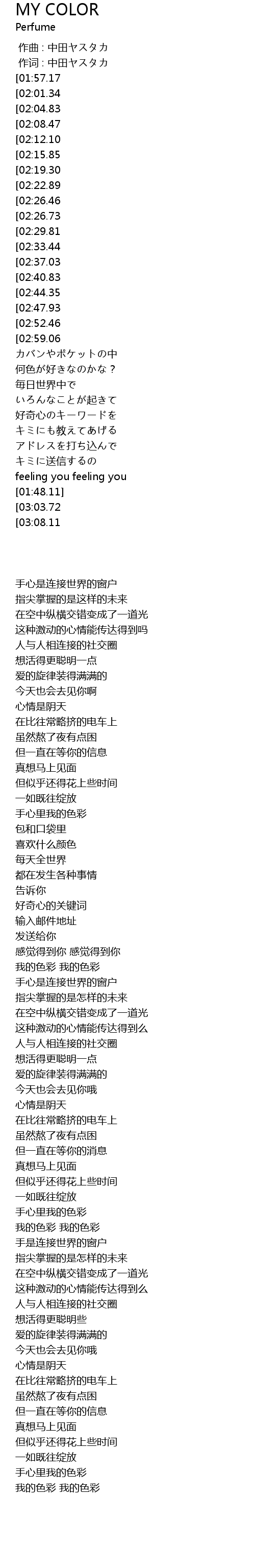 | [04:38.30][03:03.72][01:50.89] | My color My color |