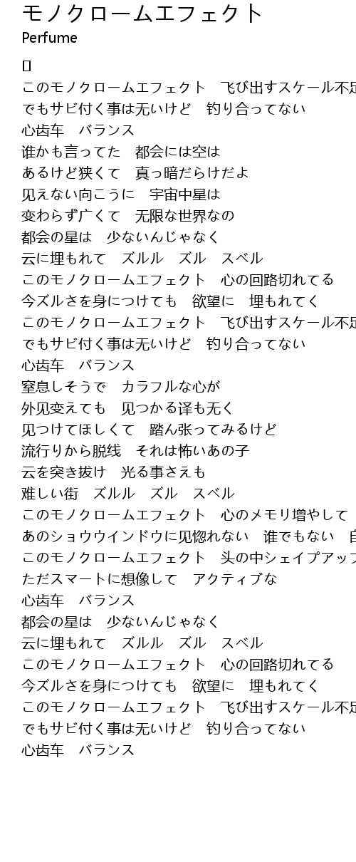 | このモノクロームエフェクト 心のメモリ增やして | |