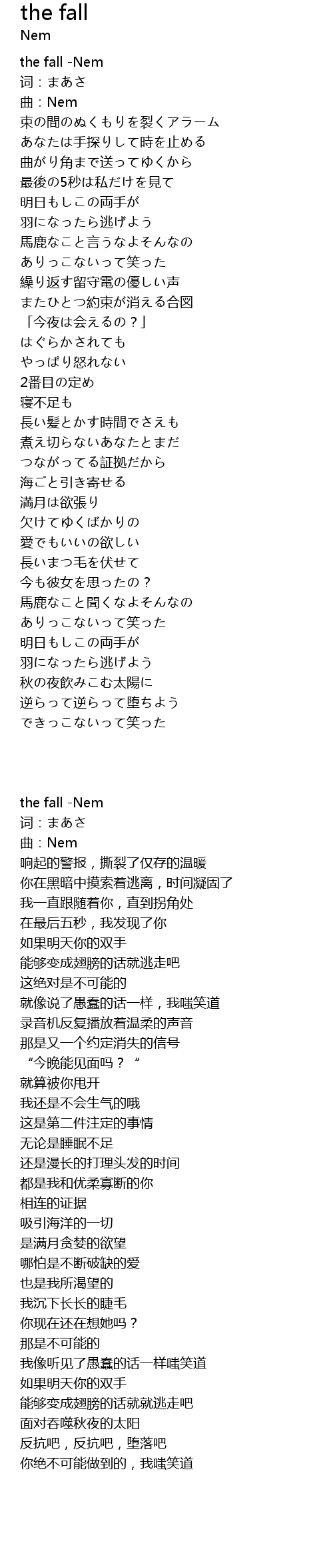 | [04:12.299] | 逆らって逆らって堕ちよう |