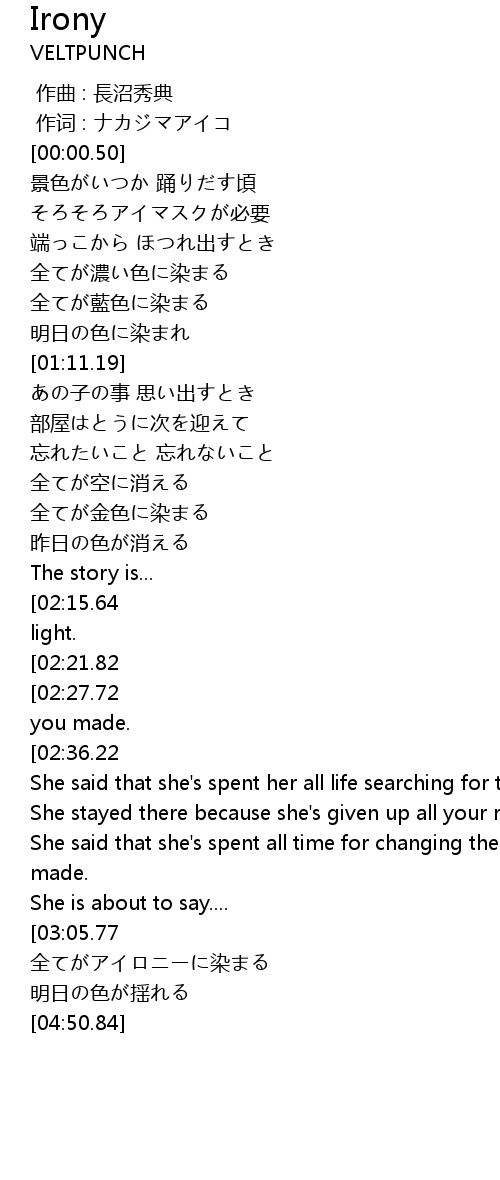| [04:26.84] | 全てがアイロニーに染まる |