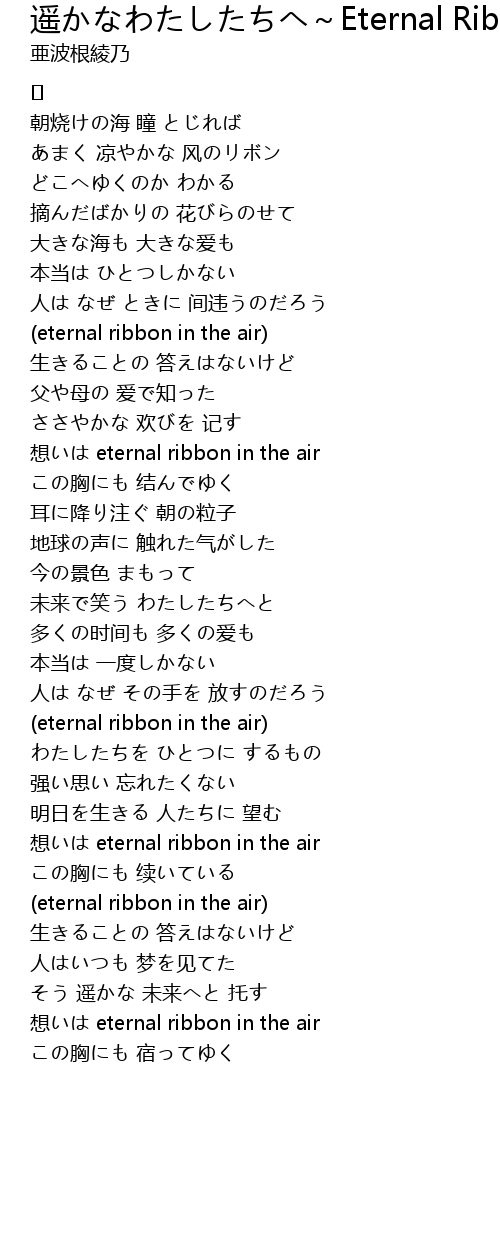 | Song | 遥かなわたしたちへ~Eternal Ribbon in the Air |