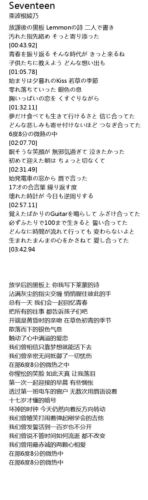 | [02:44.16] | 17才の合言葉 繰り返す度 |