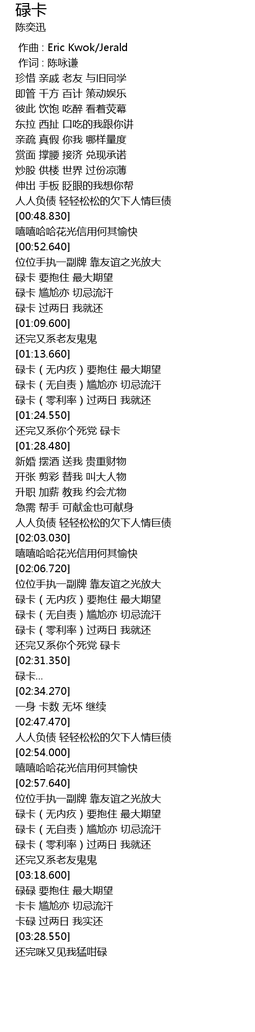 | [01:06.290] | 碌卡 过两日 我就还 |
