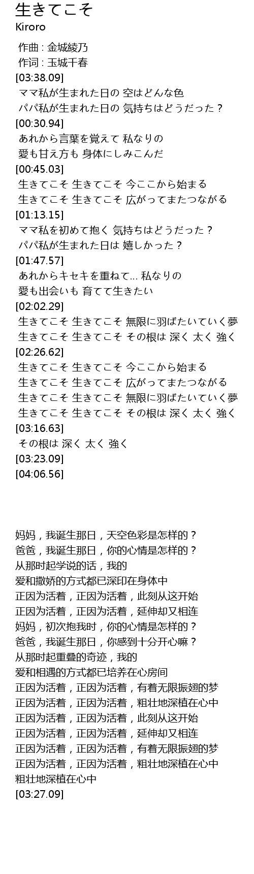 | [00:48.78] | 生きてこそ 生きてこそ 今ここから始まる |