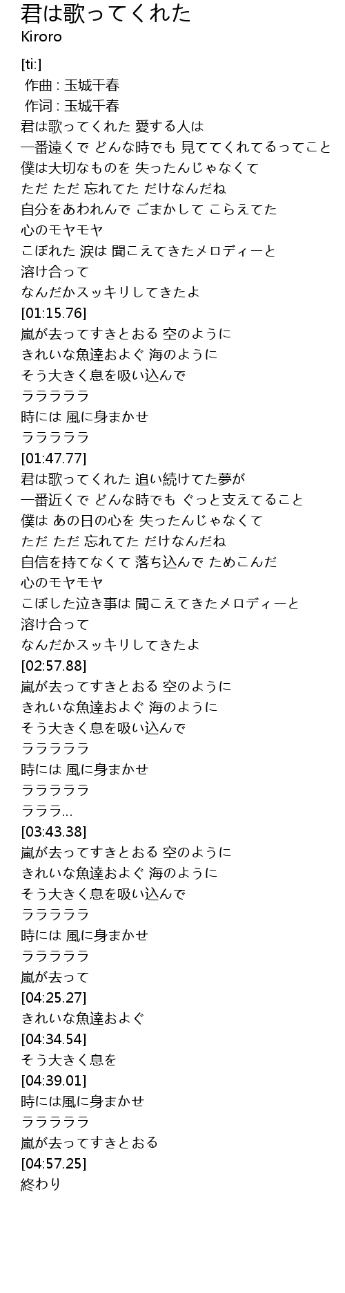 | [01:59.22] | 君は歌ってくれた 追い続けてた夢が |