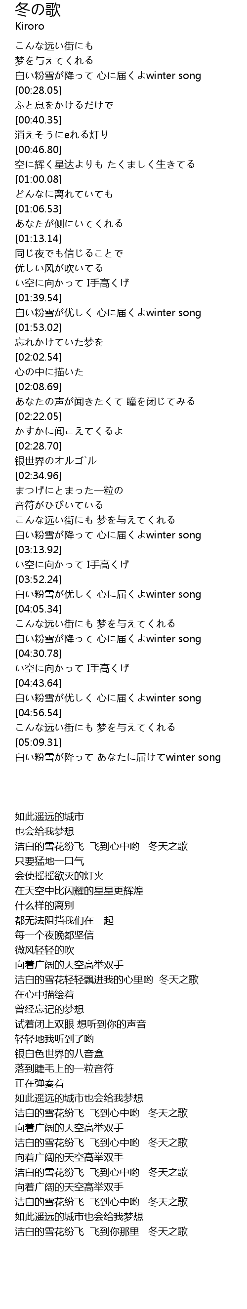 | [04:44.24] | 白い粉雪が优しく 心に届くよwinter song |