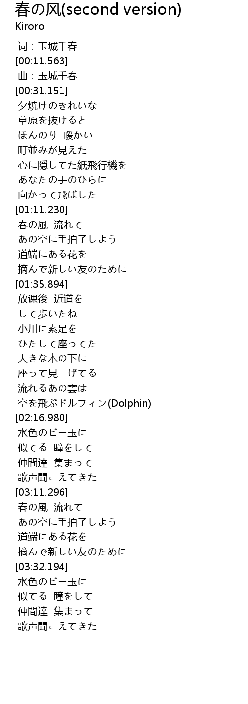 | [02:12.301] | 空を飛ぶドルフィン(Dolphin) |