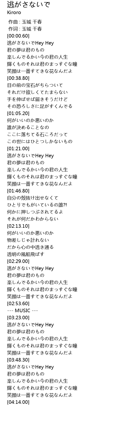 | [00:00.00] | 作曲 : 玉城 千春 |