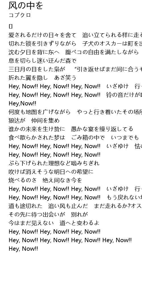 | Hey, Now!! Hey, Now!! Hey, Now!! いざゆけ 怯むな 风と走れ | |