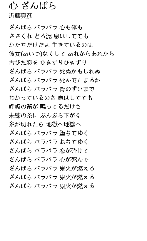 ざんばら バラバラ 心が死んで |