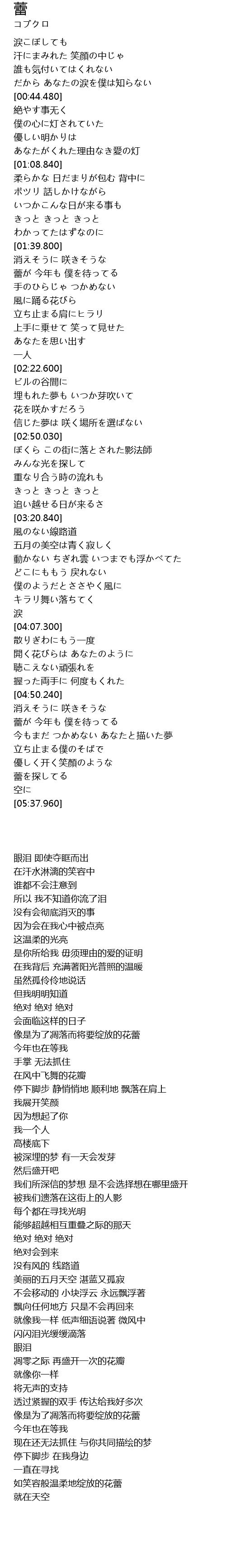 | [04:56.770] | 蕾が 今年も 僕を待ってる |