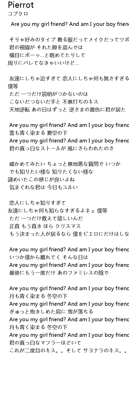| Are you my girl friend? And am I your boy friend? | |