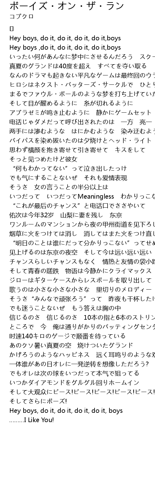 | Song | ボーイズ・オン・ザ・ラン |