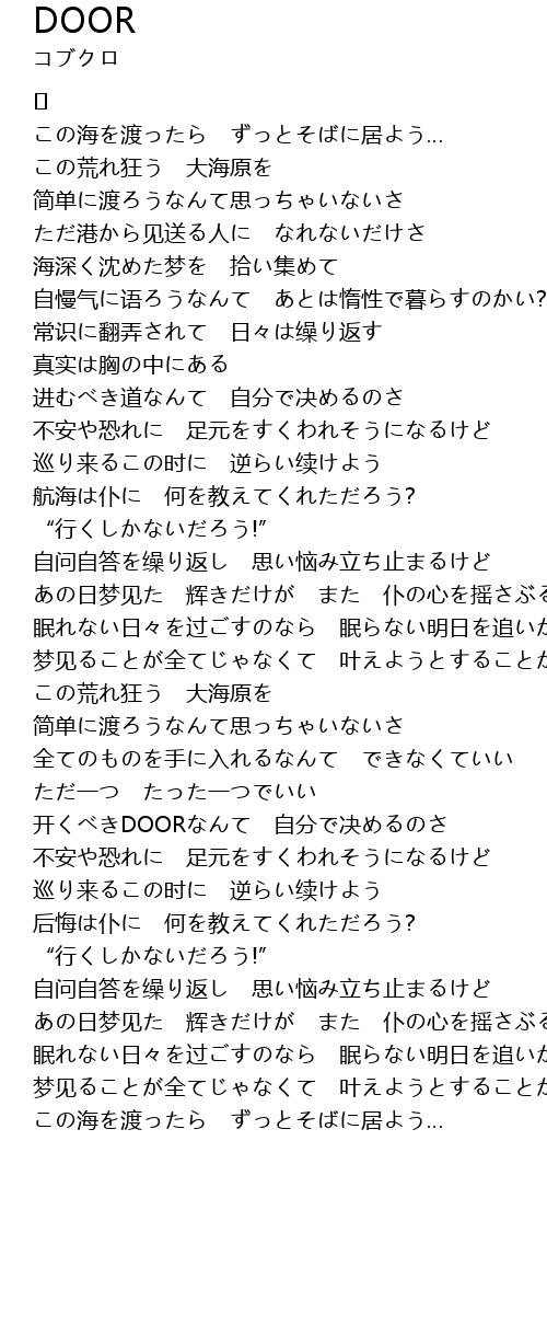 | 开くべきDOORなんて 自分で决めるのさ | |